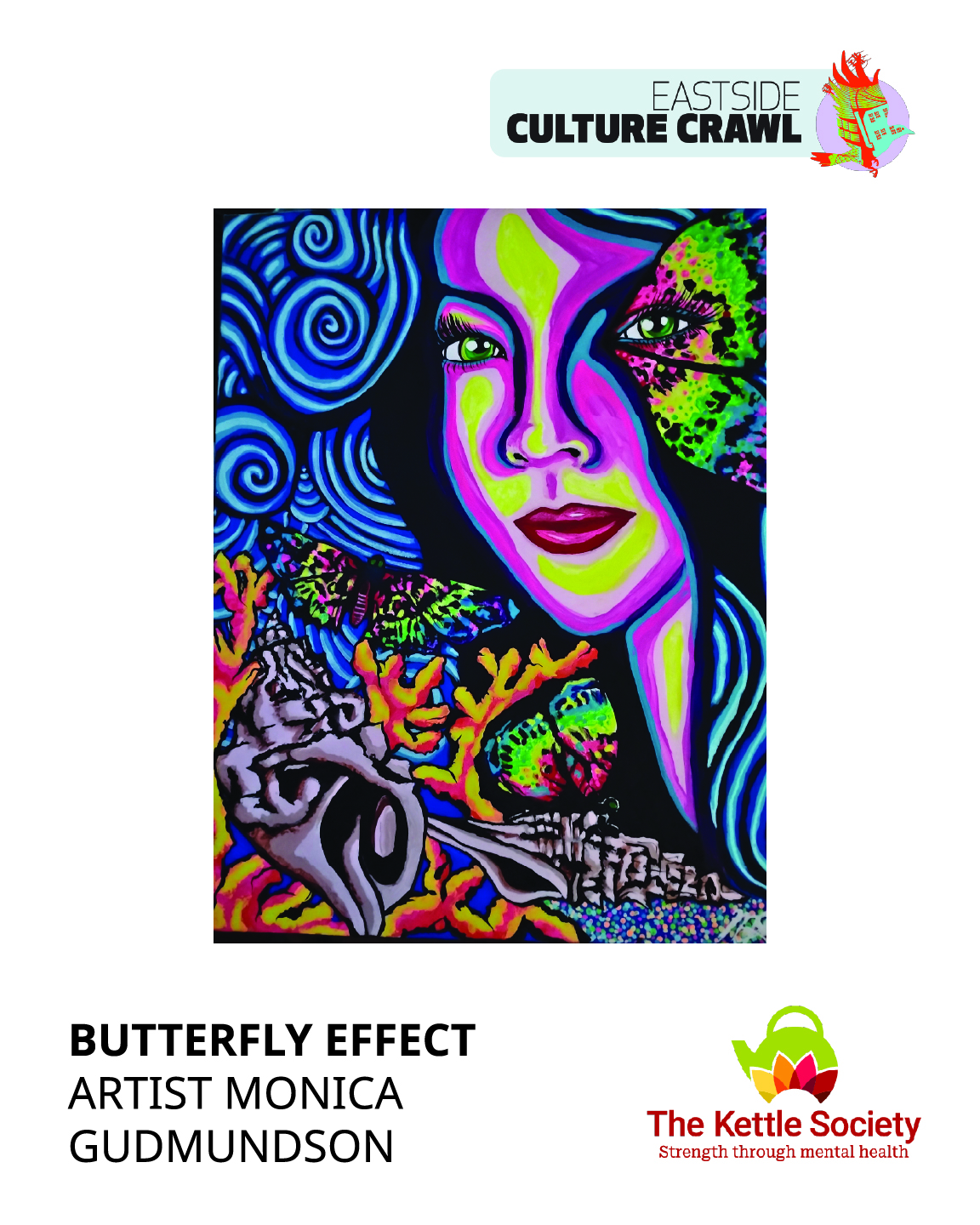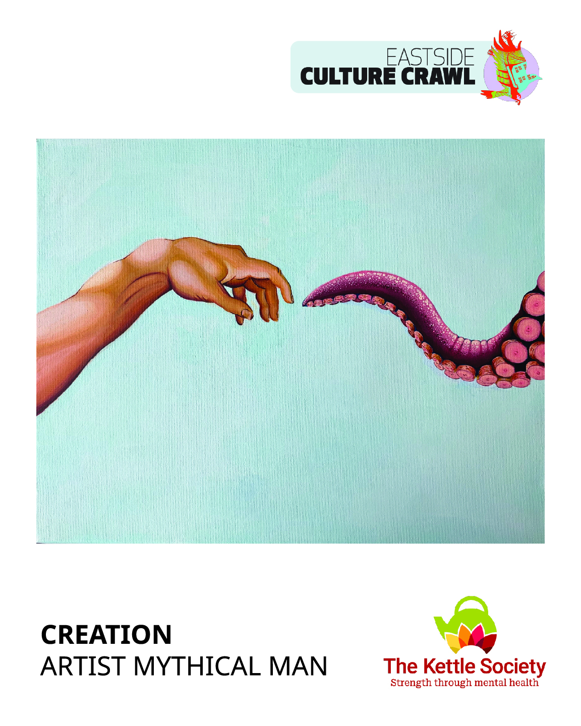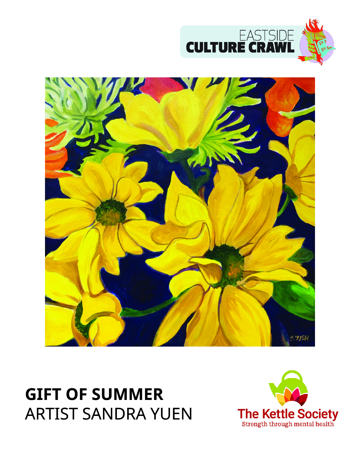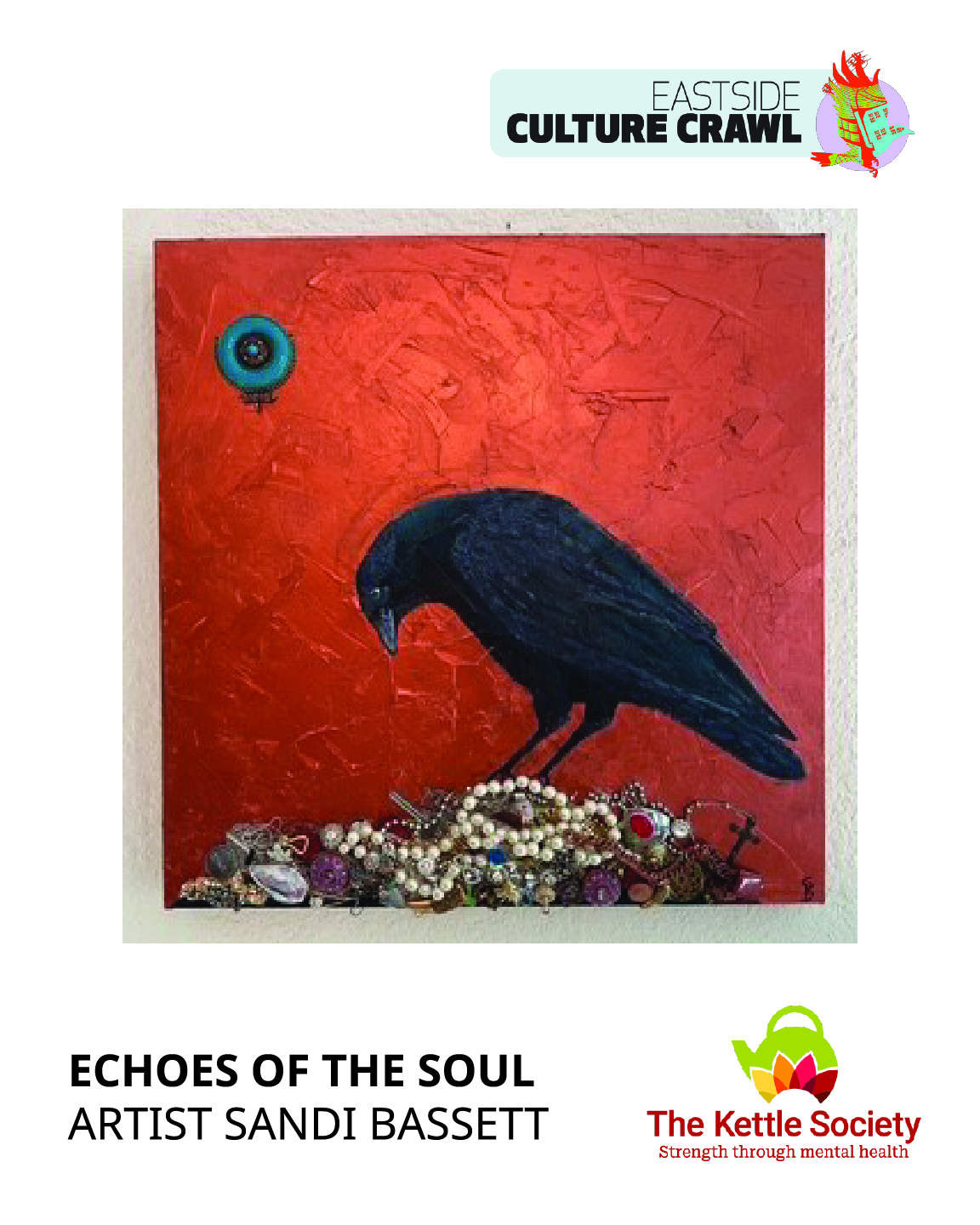 Since 2003, The Kettle Society has proudly participated in the Eastside Culture Crawl through its large-scale art exhibition, Art Against Stigma. Each year, the Society transforms one of its community service spaces—most recently The Recovery Café at 620 Clark Drive—into a gallery that spans from floor to ceiling, showcasing artwork created by individuals with lived experience of mental illness.